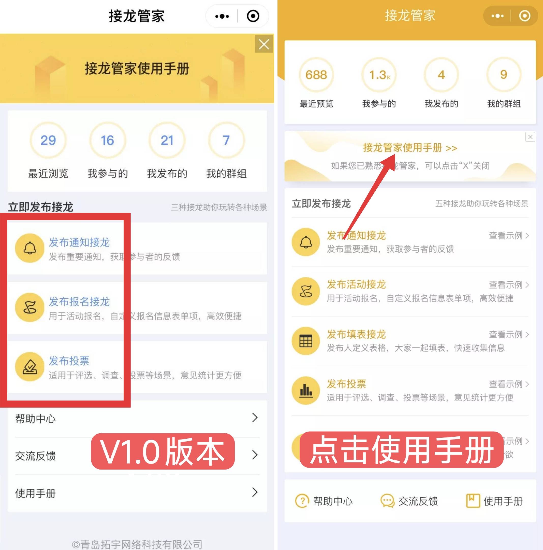 接龙管家,2022 年 1 月 1 日,我们仍以产物力博得口碑,我们做的不只是优化,接龙管家小法式 v1.0 低调上线。接龙管家刚好坐正在了时代的 “风口”。