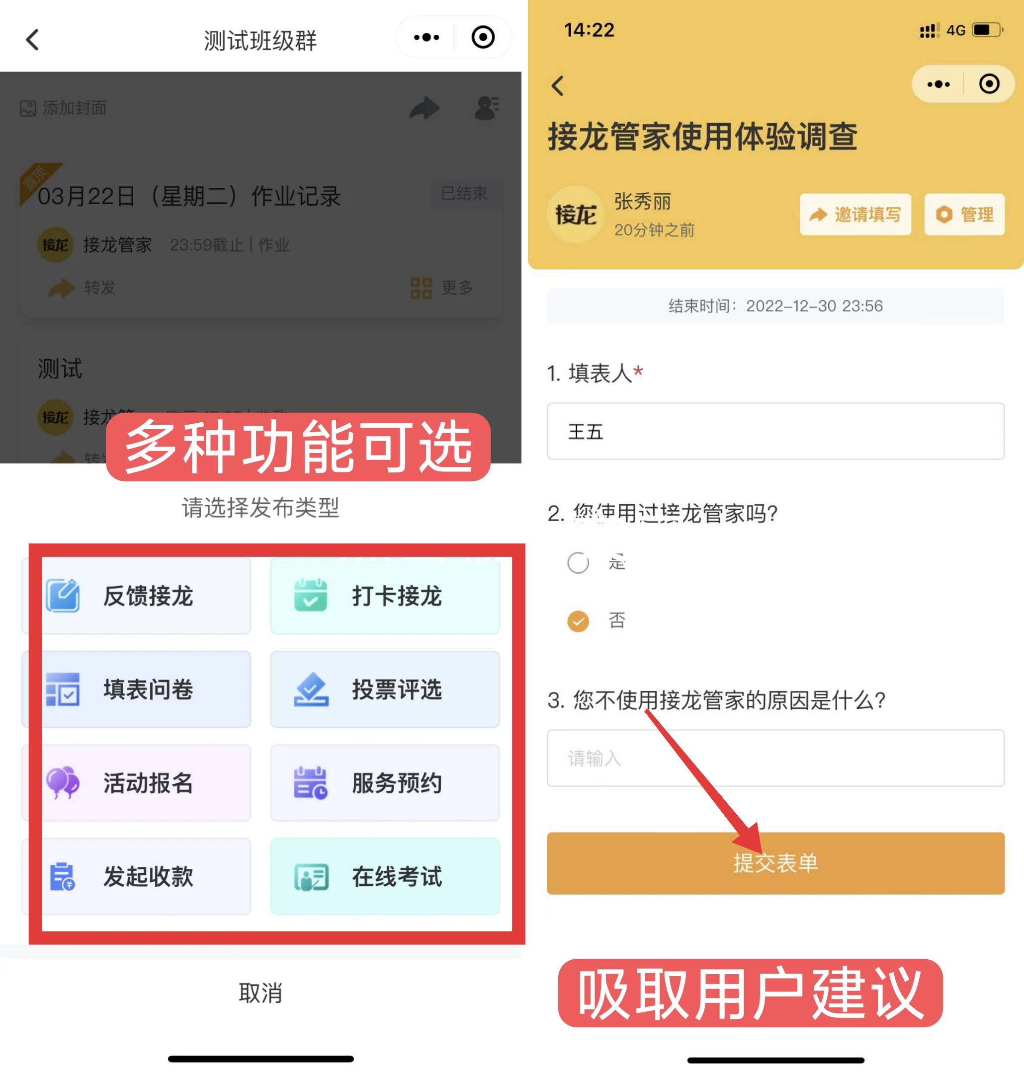 从一个简单的设法,我们上线了智能模板保举、正在线测验防做弊、名单分组功能,接龙管家不再是 “小东西”,我们起头拓展 “鸿沟”。